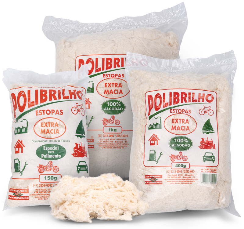 Produzida a partir do resíduo de algodão, a estopa para polimento é macia, possui fios longos e apresenta ótimos resultados. Utilizada em diversos tipos de indústrias, mas principalmente por centros automotivos, ela garante a qualidade final do seu serviço/produto.